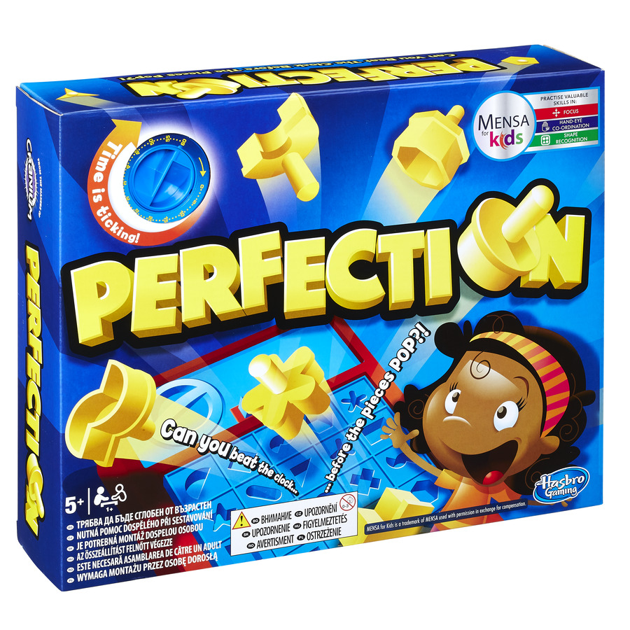 Jednou ze her, u které se jistě pobavíte vy i vaše ratolesti, je Perfection od značky Hasbro, u níž se vám i vašim dětem zlepšuje celková koordinace rukou a oči a zdokonaluje rozpoznávání různých tvarů. Princip celé hry spočívá v co nejrychlejším seřazení všech tvarů do prázdných, tomu určených míst. Musíte to však stihnout do daného časového limitu, jinak nastává výbuch a začínáte znova.
